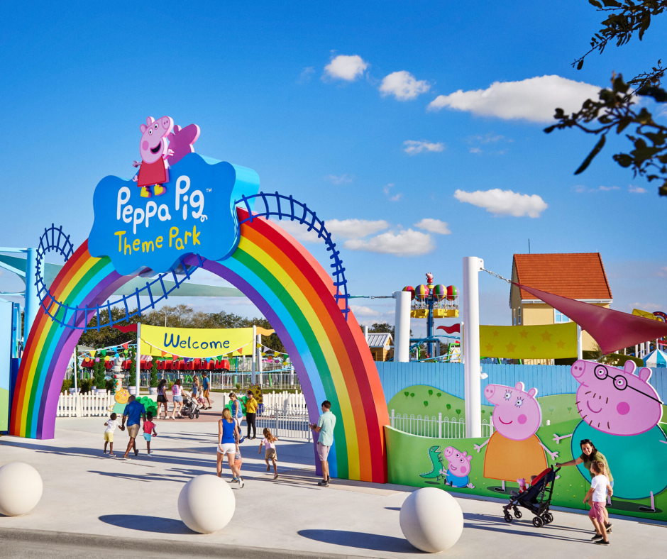 Parque temático dedicado ao universo da personagem infantil Peppa Pig, com brinquedos, áreas de recreação e shows para crianças pequenas, focado em diversão educativa e segura.