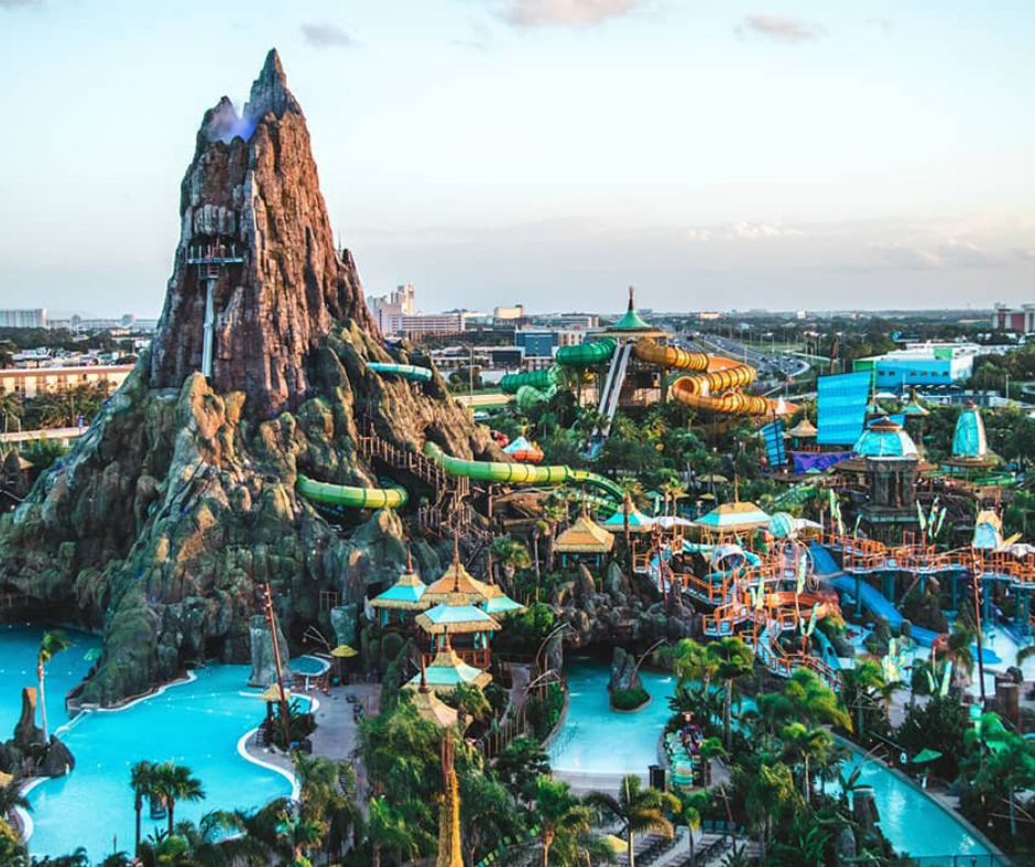 Volcano Bay é conhecido pela sua temática tropical e tecnologia avançada para filas virtuais e conforto dos visitantes